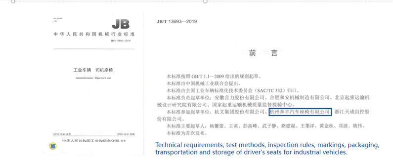 (Technische vereisten, testmethoden, inspectieregels, markeringen, verpakking, transport en opslag van bestuurdersstoelen voor industriële voertuigen.)